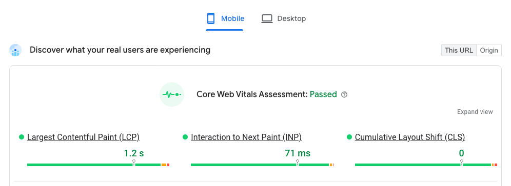 Look are real user data. If the core metrics are green, there are possibly bigger fish to fry CRO-wise, but, as mentioned, Google’s “Good” isn’t CRO's gold standard.